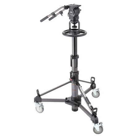 Professional Pedestal System for Outside Broadcasting. Accommodates many studio cameras. Supports 17kg / 37.5lb. Compact pneumatic pedestal systems for outside broadcasting. Easy Setup. Supplied air pump for weight adjustments. Double bearing system to prevent wobbling. Smooth movements. Outside Broadcast Dolly DL-8B included.</p>