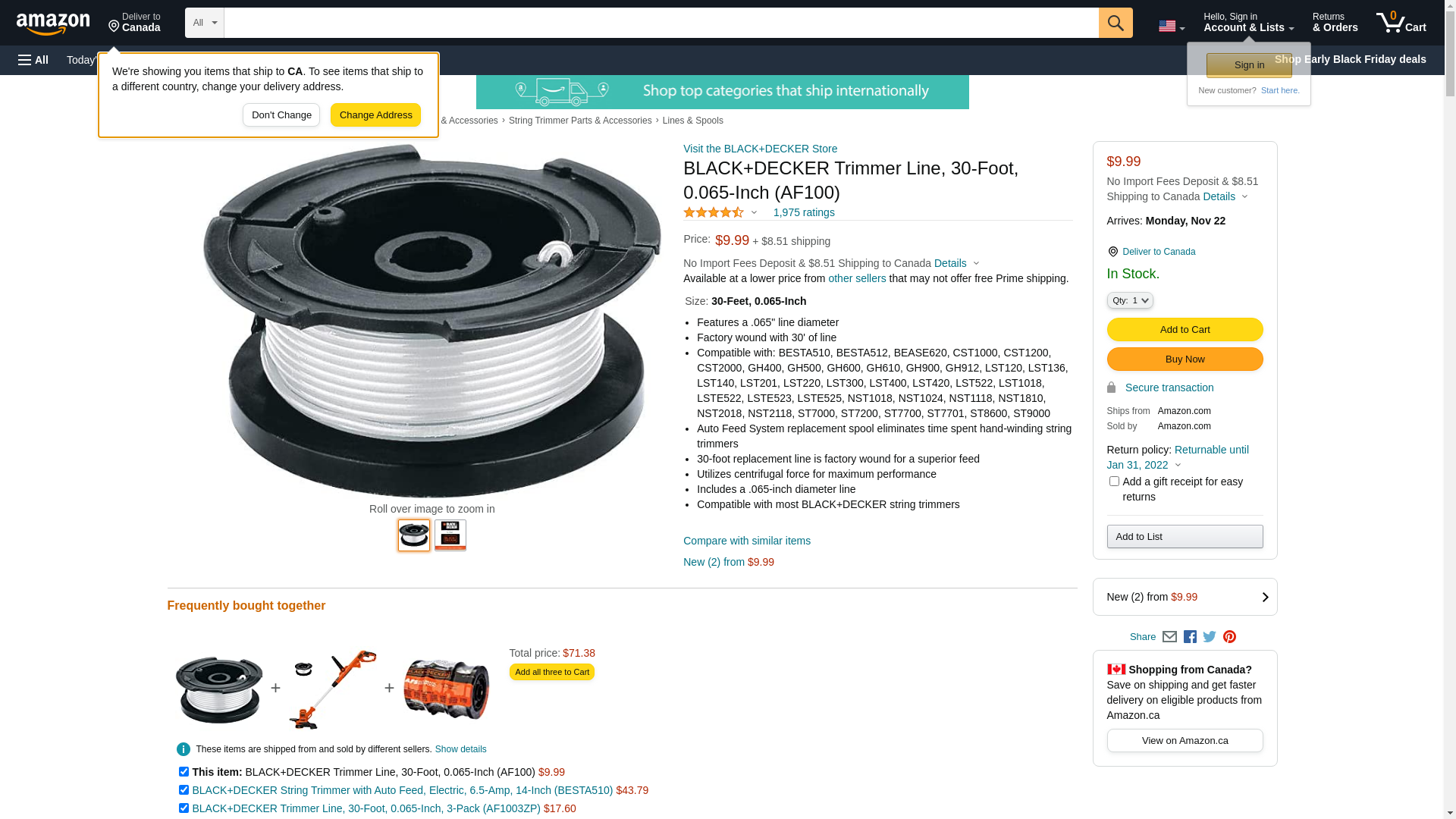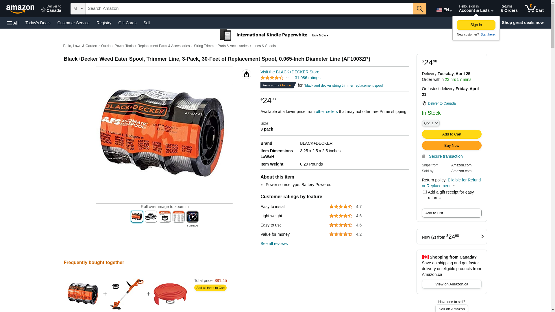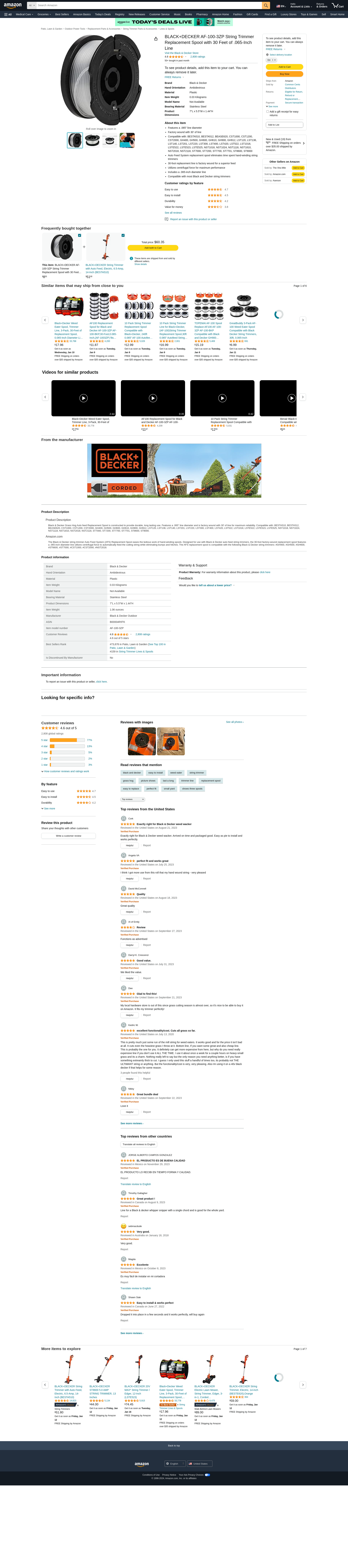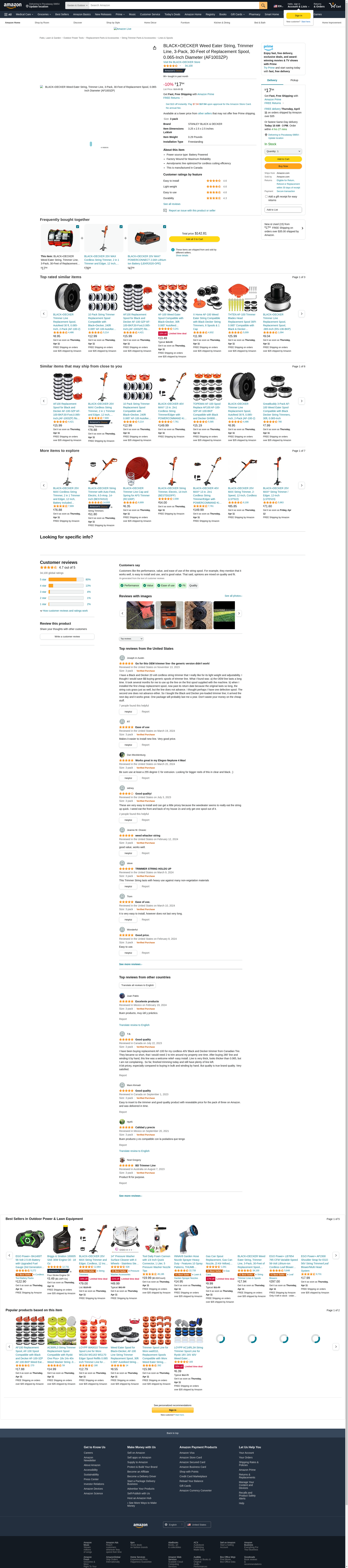 | Feature | Quantity of (3) Black & Decker Grass Hog 3 Packs 30\' x .065", Replacement Trimmer Line & Spool |