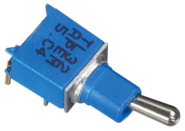 The TL46W005000 is a sub-miniature toggle switch manufactured by APEM featuring DPDT contacts, designed for right angle horizontal PCB mounting. The toggle switch features a single piece sealed case making them suitable for a wide range of applications.<br><br><li>On-On operation</li><li>DPDT contacts</li><li>Horizontal right angle PCB mounting</li><li>Gold plated brass terminals</li><li>2.54mm pitch</li><li>Rating: 0.4A 20V</li>