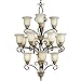 Progress Lighting P4381-105C Sixteen-Light, Three-Tier Chandelier with Satin Etched Glass and Displays Grand Candleholders in Sun-Washed Limestone, Pietra Crackle and Weathered Bronze