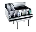Krowne Metal's Royal 1800 Series Underbar Ice Bin/Cocktail Station, bottle well bin, 42"W x 19"D O.A., built-in 10-circuit cold plate, 6-1/2"H backsplash with tubing access, 30"W ice bin on right, 97 lbs. capacity, (1) 12"W insulated bottle storage unit on left, stainless steel construction, stainless steel legs with adjustable plastic bullet feet, NSF.