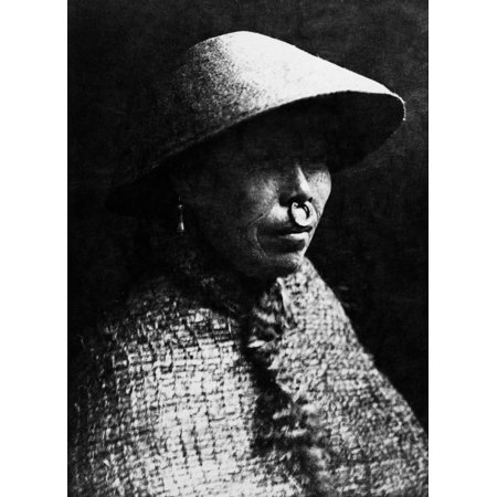 Clayoquot Woman 1915 Na Clayoquot Woman From The West Coast Of Vancouver Island British Columbia Canada Wearing A Cedar Bark Hat And Cape Photographed By Edward S Curtis 1915 Rolled Canvas Art - (24