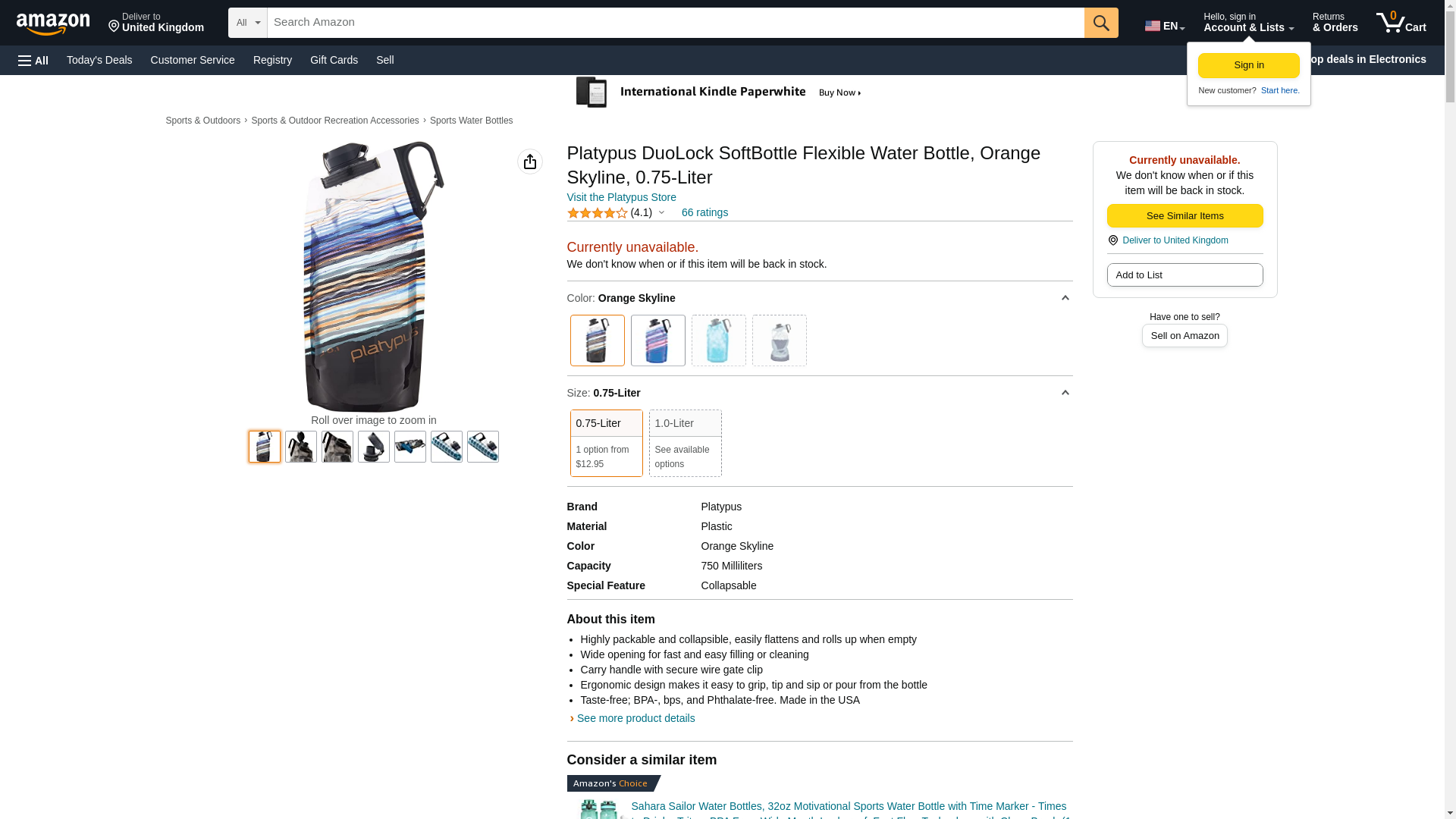 Platypus DuoLock SoftBottle Collapsible Water Bottle, Orange Skyline, 0.75-Liter