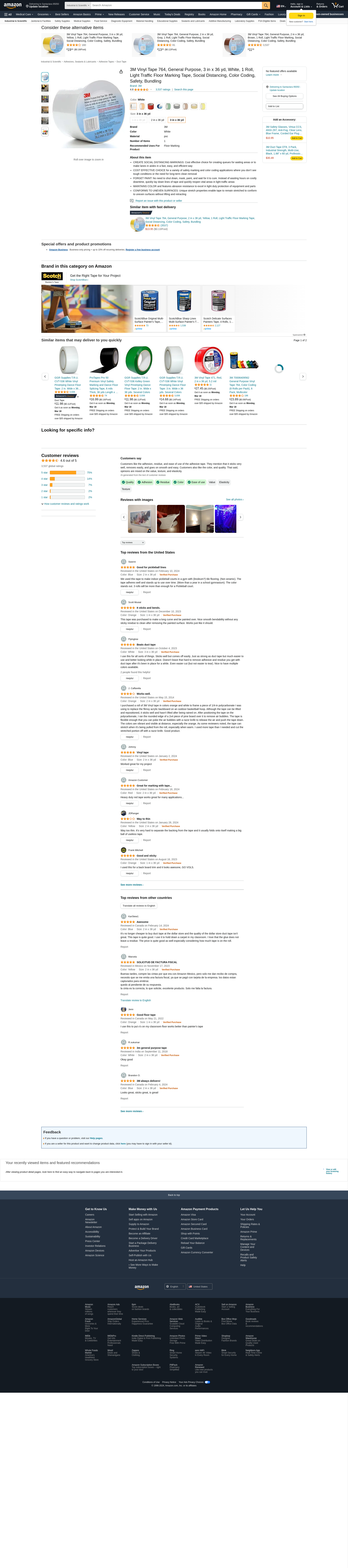 3M General Purpose Vinyl Tape 764 White, 3 in x 36 yd 5.0 mil (Pack of 1)