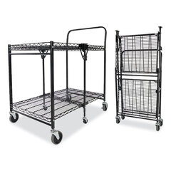 - Stowaway Folding Carts, 2 Shelves, 35W X 37.25D X 22H, Black, 250 Lb Capacity