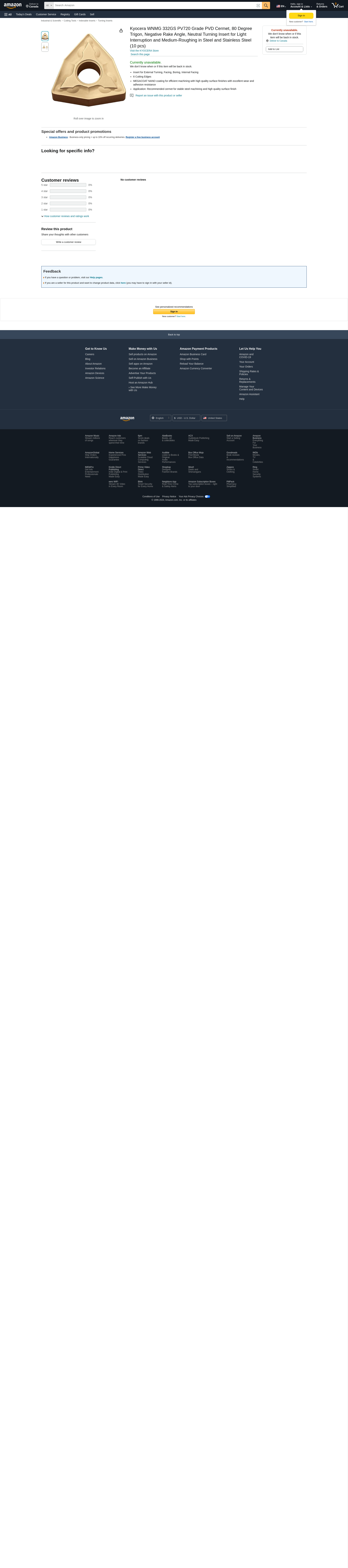 Kyocera WNMG 332GS PV720 Grade PVD Cermet, 80 Degree Trigon, Negative Rake Angle, Neutral Turning Insert for Light Interruption and Medium-Roughing in Steel and Stainless Steel (10 pcs)
