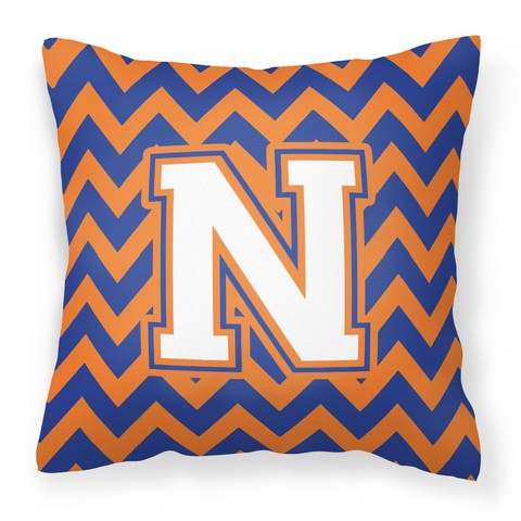Carolines Treasures CJ1060-NPW1414 Letter N Chevron Blue & Orange No.3 Fabric Decorative Pillow