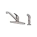 This Oakbrook one handle side sprayer kitchen faucet in brushed nickel is designed to complement a variety of kitchen decorating schemes. The single-control lever handle easily adjusts both water flow and temperature. The color-matched side sprayer can be used, not only for washing vegetables, but also for washing down the sink. The faucet's 1-handle design makes water control almost effortless.