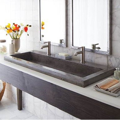 Native Trails NSL4819-A Native Stone Trough Bathroom Sink, 48" x 19", Ash, Dual Faucet Hole