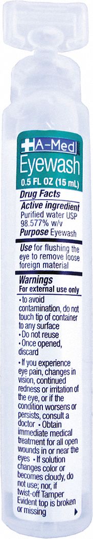 'Personal Eye Wash Bottle, Bottle Size 1/2 oz., Shelf Life 4-1/2 yr., Standards FDA'