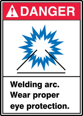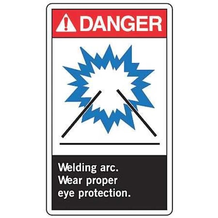 Accuform MRLD002VA Aluminum Sign, Legend"Danger Welding ARC. WEAR Proper Eye Protection", 10" Length x 7" Width, Red/Blue/Black on White