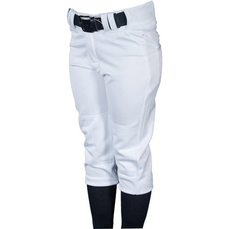 <br /> <b>Louisville Slugger Women's Slugger Fast Pitch OKC Low-Rise Pants with Belt Loops, White:</b> <ul> <li>2 snaps and a brass zipper</li> <li>2 set-in welt pockets</li> <li>Double knee</li> <li>Great fit in a full athletic cut</li> <li>2" elastic waistband secured with drawstring</li> <li>Belt loops</li> <li>100 percent double knit polyester warp knit heavy pro weight</li> <li>Knickers length</li> <li>Louisville Slugger logo back belt loop</li> <li>Available in various sizes</li> </ul>