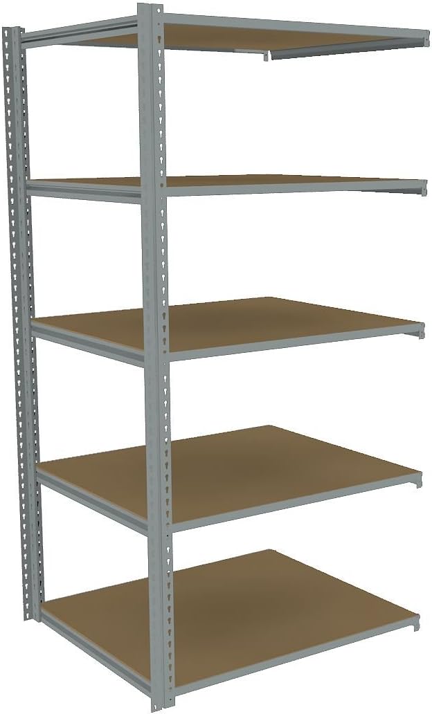 Boltless Shelving, Shelf Configuration Single Straight, Width 43 In., Depth 36-5/8 In., Height 84 In., Number of Shelves 5, Material Steel, Beam Capacity 550 lb., Shelf Capacity 550 lb., Decking Material Particle Board, Color Gray, Finish Electro Coat, Shelf Adjustments 1-1/2 In., Includes (2) Posts and (20) Beams</p><p><b>Specifications: </b></p><ul><li>Beam Capacity: 550 lb.</li><li>Width: 43"</li><li>Finish: Electro Coat</li><li>Material: Steel</li><li>Number of Shelves: 5</li><li>Shelf Capacity: 550 lb.</li><li>Color: Gray</li><li>Decking Material: Particle Board</li><li>Item: Boltless Shelving</li><li>Shelf Style: Single Straight</li><li>Shelf Adjustments: 1-1/2"</li><li>Green Environmental Attribute: Minimum 30% Post-Consumer Recycled Content</li><li>Includes: (2) Posts and (20) Beams</li><li>Depth: 36-5/8"</li><li>Height: 84"</li></ul><p></p>