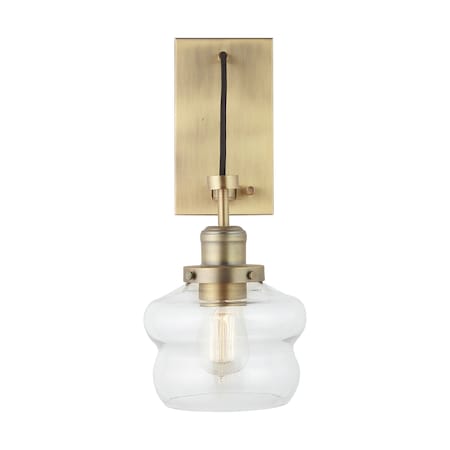 Capital Lighting 634813AD-481 Rhodes Clear Glass Wall Sconce, 1-Light 100 Watt, 22"H x 7"W, Aged Brass