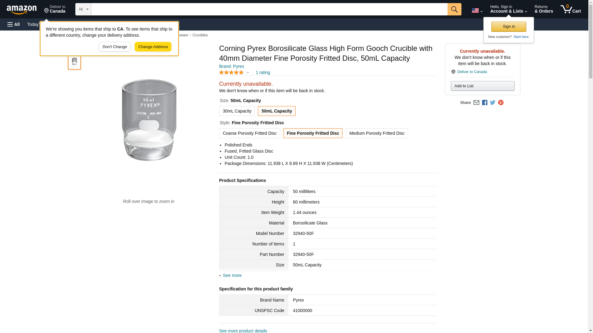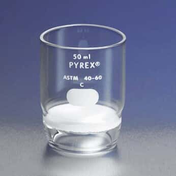Corning Pyrex Borosilicate Glass High Form Gooch Crucible with 40mm Diameter Fine Porosity Fritted Disc, 50mL Capacity
