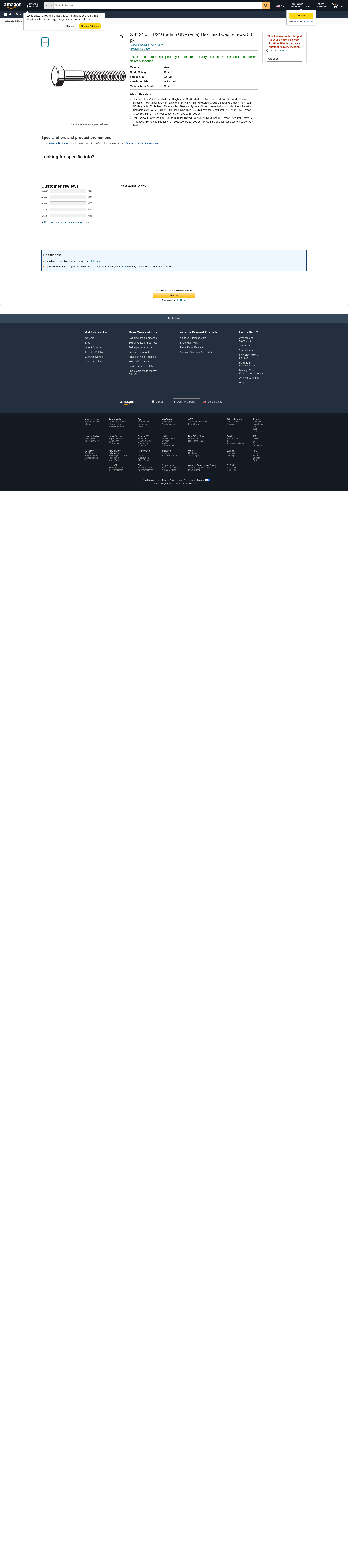 - <b>Price For:</b> Each <b>Head Height</b>: 15/64" <b>Item</b>: Hex Head Cap Screw <b>Thread Direction</b>: Right Hand <b>Fastener Finish</b>: Plain <b>Screw Grade/Class</b>: Grade 5 <b>Head Width</b>: 9/16" <b>Basic Material</b>: Steel <b>System of Measurement</b>: Inch <b>Screw Industry Standards</b>: ASME B18.2.1 <b>Head Type</b>: Hex <b>Fastener Length</b>: 1-1/2" <b>Dia./Thread Size</b>: 3/8"-24 <b>Proof Load</b>: 74, 000 to 85, 000 psi