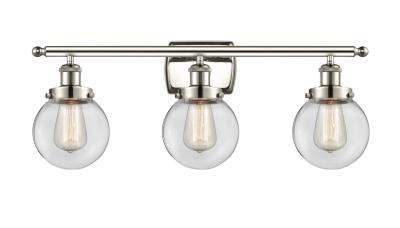 INNOVATIONS LIGHTING 916-3W-PN-G202-6-LED BALLSTON BEACON 3 LIGHT 26 INCH CLEAR GLASS VANITY LIGHT, POLISHED NICKEL, LED