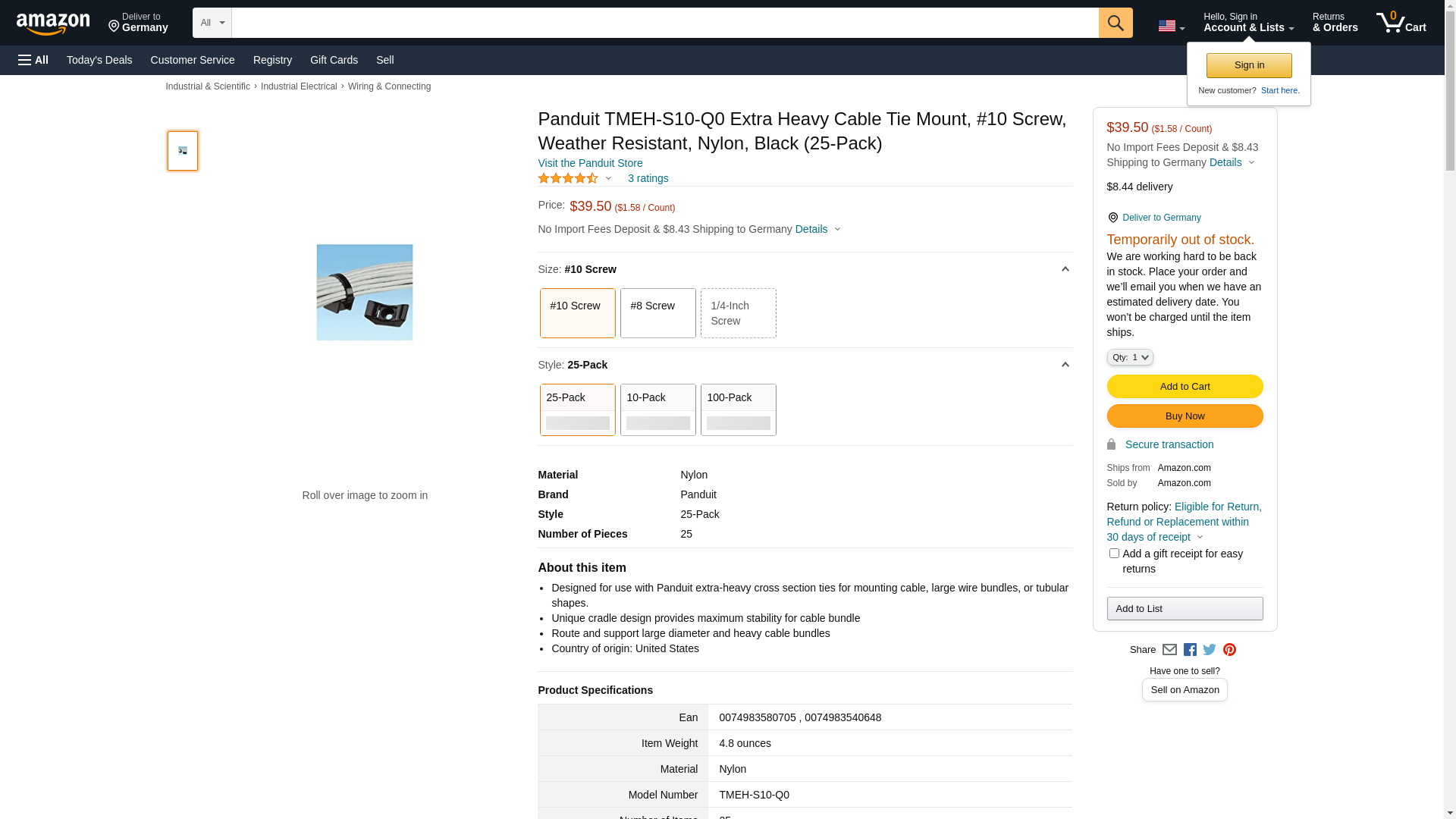 Panduit Mount, Extra Heavy, Outdoor, Pk25 - TMEH-S10-Q0