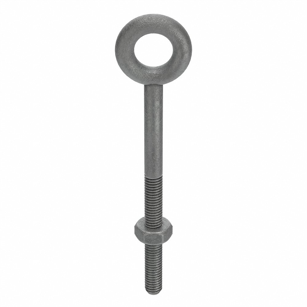 Eye Bolt, System of Measurement Inch, Eyebolt Type Without Shoulder, Material Steel, Finish Galvanized, Thread Size 3/8 In.-16, Thread Length 3 In., Shank Dia. 3/8 In., Shank Length 4-1/2 In., Shoulder Length -, Eye Inside Dia. 3/4 In., Eye Outside Dia. 1-1/2 In., Overall Length 6.00 In., Length from Ream Center -, Working Load Limit 1200 lb., Includes Nut