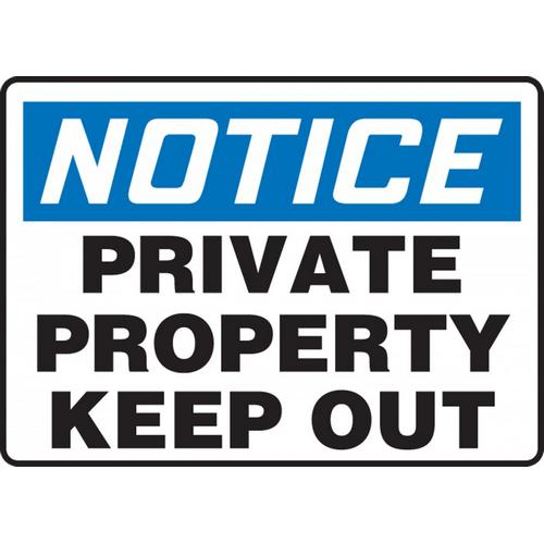 Accuform MATR800VS, 7" x 10" Adhesive Vinyl OSHA Sign with Legend: "Private Property Keep Out" Notify personnel with informative signs not to trespass on private property. Keep unauthorized personnel out of designated areas with notice signs Deny access to private property with posted signs Traditional OSHA-style signs, tags and labels are the most widely recognized design format in the industry Notice header indicates information considered to be important but not hazard-related Adhesive Vinyl (VS) - Self-stick custom signs. Adhesive Vinyl is a moisture-resistant custom sign material that adheres to almost any flat surface. Adhesive vinyl signs will work for short term outdoor applications, and in moderate temperatures.