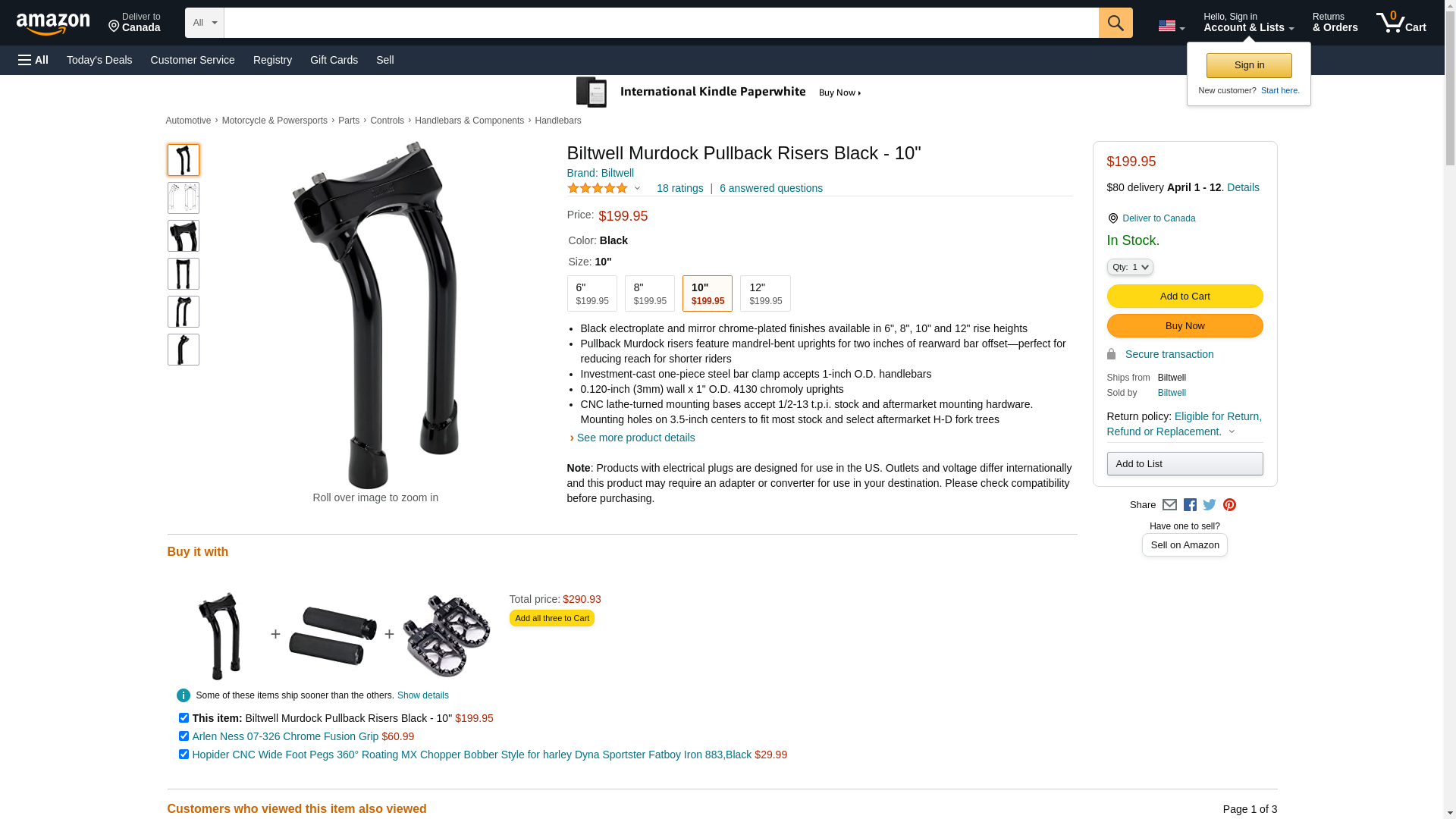 Biltwell Inc. Murdock Pullback Risers - 10in. - Black - MP-010-HD-BK