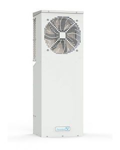 Pfannenberg 12480811005 PKS 3301, 115 Volt AC, 150 W/DegC, 10,200 btu/hr, 353 Watts, 3 Amp, NEMA 12, RAL7035 Lt Gray, Galv Steel, 35 In H x 12 In W x 11 In D, 54 lbs wt, Air-to-Air Closed Loop Heat Exchanger