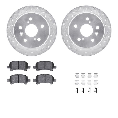 Dynamic Friction Company Rear Brake Rotors Drilled and Slotted Silver with 5000 Advanced Brake Pads includes Hardware - 7512-76058