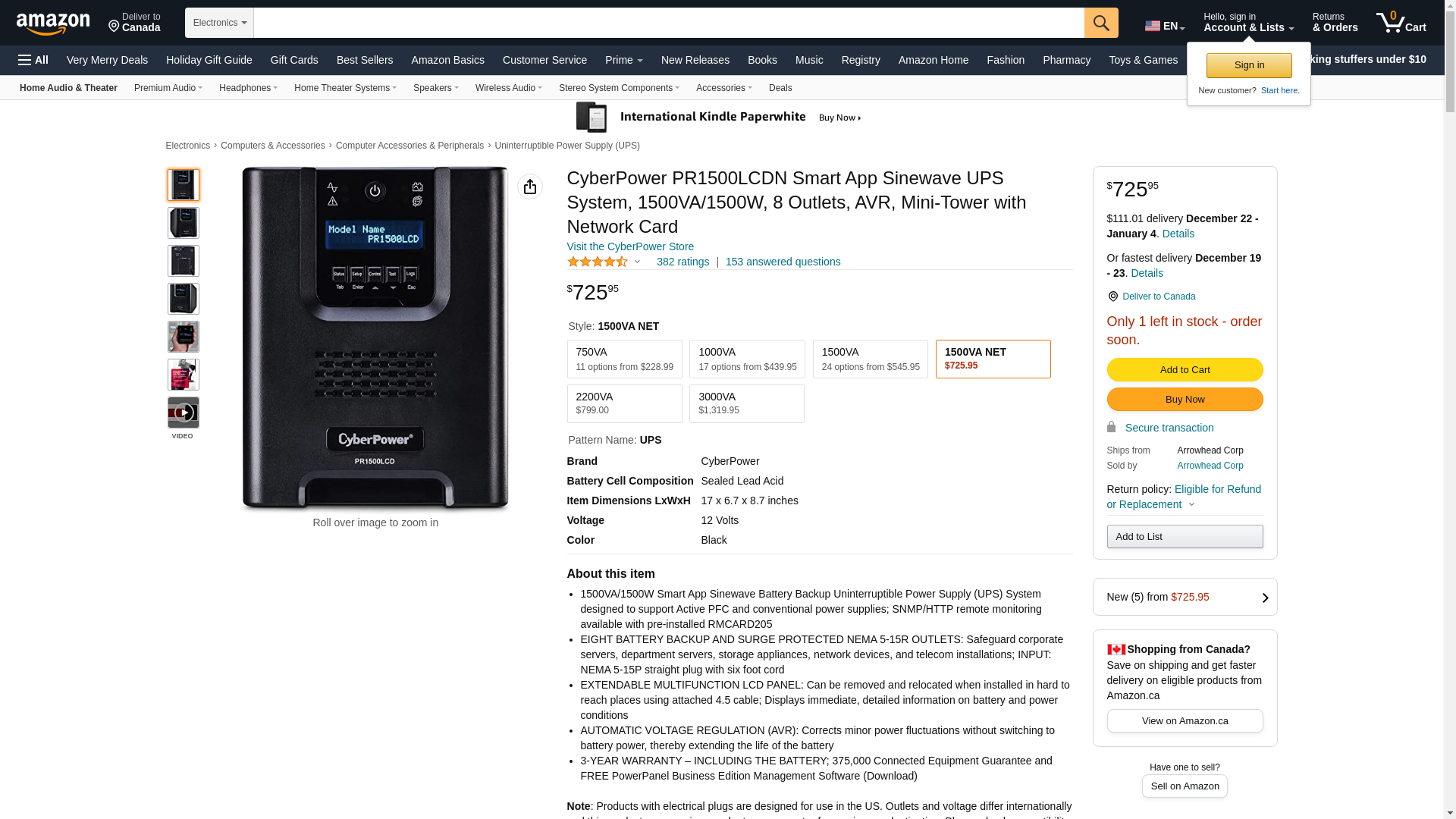 | 6_PR1500LCDN_1 | 1 | -2 | 1 | 1 @ $769.00 | |