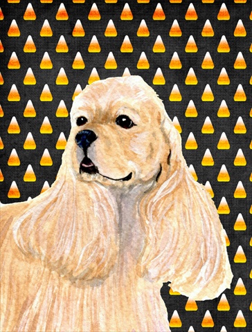 Carolines Treasures SS4315CHF 28 x 40 in. Cocker Spaniel Candy Corn Halloween Portrait House Size Canvas Flag