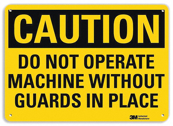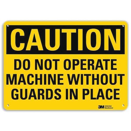 Smartsign U4-1187-RA_10X7"CAUTION DO NOT OPERATE MACHINE WITHOUT GUARDS IN PLACE" Reflective Recycled Aluminum Sign, 10" x 7"