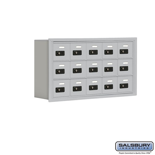 Cell Phone Storage Locker - 3 Door High Unit (5 Inch Deep Compartments) - 15 A Doors - Aluminum - Recessed Mounted - Resettable Combination Locks
