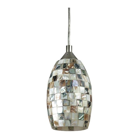 - DECORATIVE PENDANT - This 11-inch decorative LED pendant fixture is as attractive as it is functional. This Venice design features a glass shade covered in unique iridescent tiles. The base has a brushed nickel finish and a 72-inch adjustable length silver cord.
