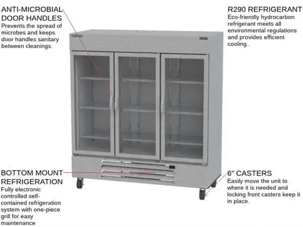 Beverage-Air HBF72HC-5-G Horizon Series - Bottom Mount Reach in Freezer - Three Section - Glass Doors - 72 Cu. Ft.