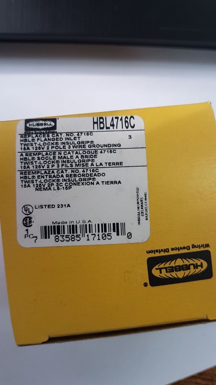 | snippet | HUBBELL HBL4716C TWIST LOCK FLANGED INLET, 2P3W, 15A 125V |