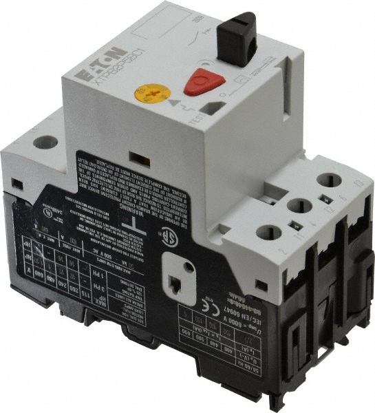 IEC Manual Motor Starters Bimetallic thermal overload relays 3-pole Trip test Phase loss sensitivity protection 35mm DIN rail mounting Class 10 overload protectionEatonXT/PKZ Series features push-button or rotary On/Off manual disconnect with lockout provision. Available with screw terminals. Built-in heater and magnetic trip protect motor. Suitable for applications requiring manual starting and stopping of motors. UL 508 Type E and F rated with use of line side adapter.UL Listed and CSA Certified. Meet CE and IEC standards.<br /><br /> Item: Manual Motor Protector<br /> Amps AC: 1.60 to 2.50A<br /> Operator: Push Button<br /> Height: 3.66"<br /> Width: 1.77"<br /> Depth: 3.35"<br /> Starter Type: Manual<br /> Frame Size: Frame B<br /> Max. Voltage: 600VAC<br /> Number of Poles: 3<br /> HP @ 1 Phase - 230V: 1/6<br /> HP @ 3 Phase - 200V: 1/2<br /> HP @ 3 Phase - 240V: 1/2<br /> HP @ 3 Phase - 480V: 1<br /> HP @ 3 Phase - 575V: 1-1/2<br /> Standards: UL Listed, CSA Certified, IEC, CCC
