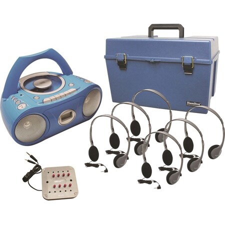 HamiltonBuhl 6 Person Listening Center With a Bluetooth Boombox Get the versatility, functionality and unrivaled value you are looking for! The HMC/CD385/HA2 is a 6 person listening center featuring our popular HA2 on-ear headphones and MPC-5050 Bluetooth boombox with CD, cassette and FM radio player and a large carry and store case with protective surround foam.