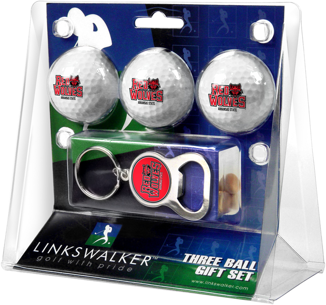 LinksWalker LW-CO3-ASI-3PKB Arkansas State Red Wolves-3 Ball Gift Pack with Key Chain Bottle Opener