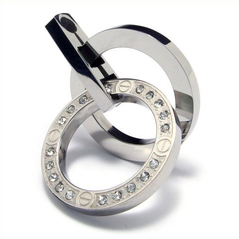 CET Domain SZ11-1013-SILVER Men's Double Ring Titanium Diamond Pendant Necklace Concentric-Color silver
