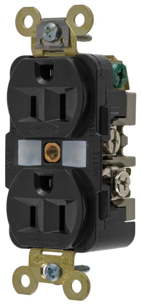 Hubbell HBL5262BK Duplex Receptacle, HD Industrial Grade, 15 amp, 125V, 5-15R, Black