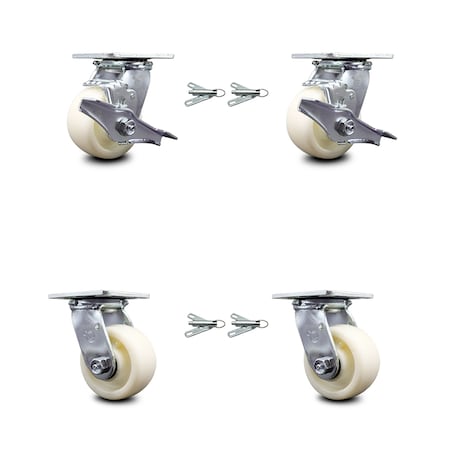 Nylon Swivel Top Plate Caster Set 4 w/4" x 2" White Wheels- Includes 2 Swivel with Brakes and Bolt on Swivel Locks & 2 Swivel with Bolt on Swivel Locks - 3200 lbs Total Capacity - Service Caster Brand