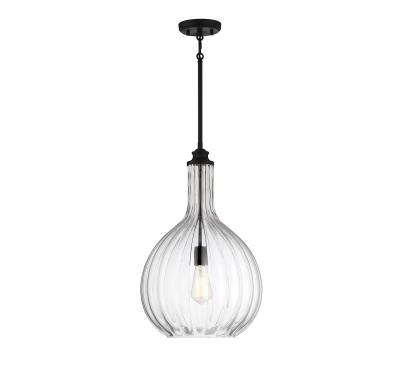 The generously proportioned Brandon Collection brings a clean look to any space with a clear, fluted blown glass shade and Matte Black accents. This one-light pendant has an adjustable height from 22" to 77" and provides illumination from one 60-watt Edison-base bulb.