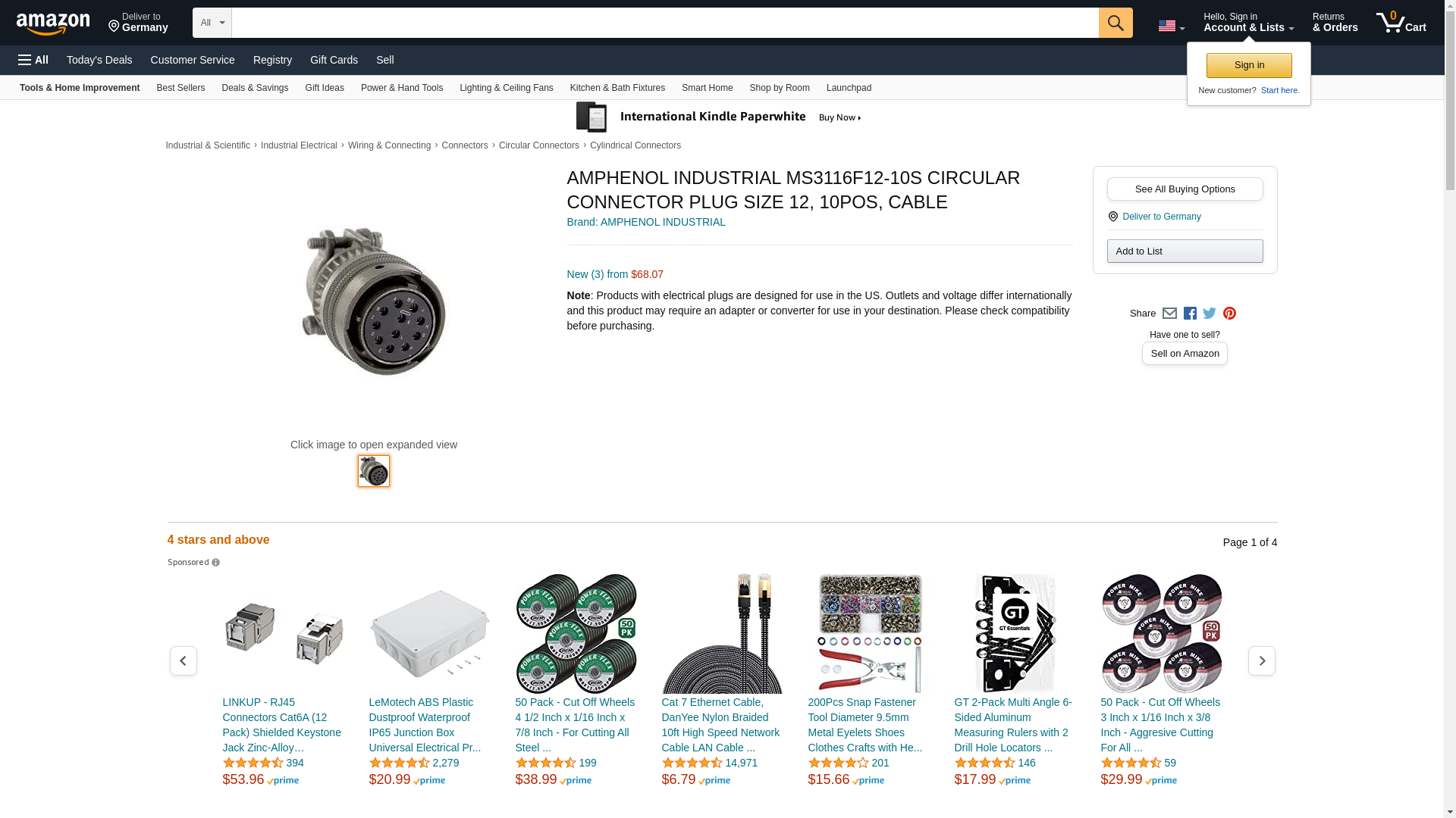 | MS3116F12-10S | 1 | 679 | 1 | 1 @ $54.06, 10 @ $36.48, 25 @ $33.86 | |