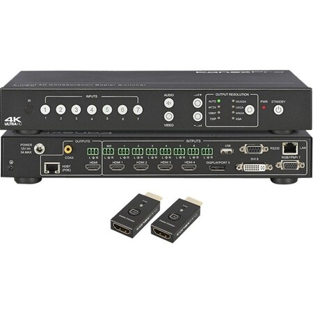 - 4K multi-input 7x2 presentation scalar Switcher - new 4K presentation system with click-to-show me controller and scalar