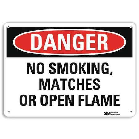 Smartsign U3-1865-RA_14X10"Danger NO Smoking, Matches OR Open Flame" Reflective Recycled Aluminum Sign, 14" x 10"