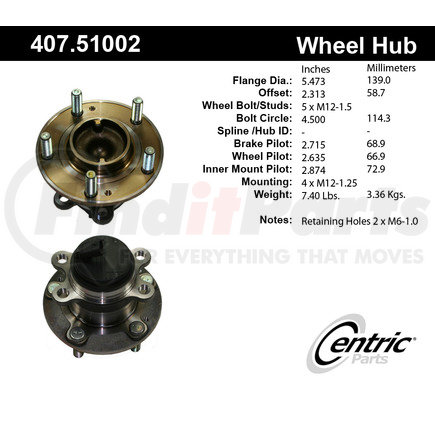 | Feature | Centric Front Wheel Bearing and Hub Assembly 407.51002 |