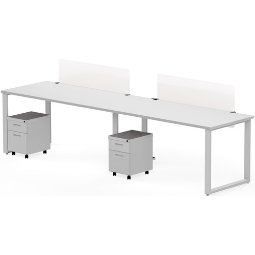 Desks (2),Screens (2),Mobile Peds (2),White Laminate/Silver Finish
