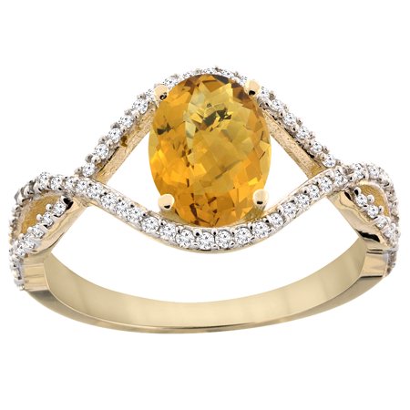 10K Yellow Gold Natural Whisky Quartz Ring Oval 8x6 mm Infinity Diamond Accents, sizes 5 - 10