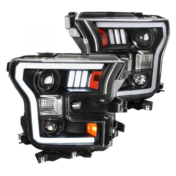 Spec-D Projector Headlights w/ LED Bars - RS (Matte Black Housing/Clear Lens) Ford F-150 2015-2017 | 2LHP-F15015JM-RS