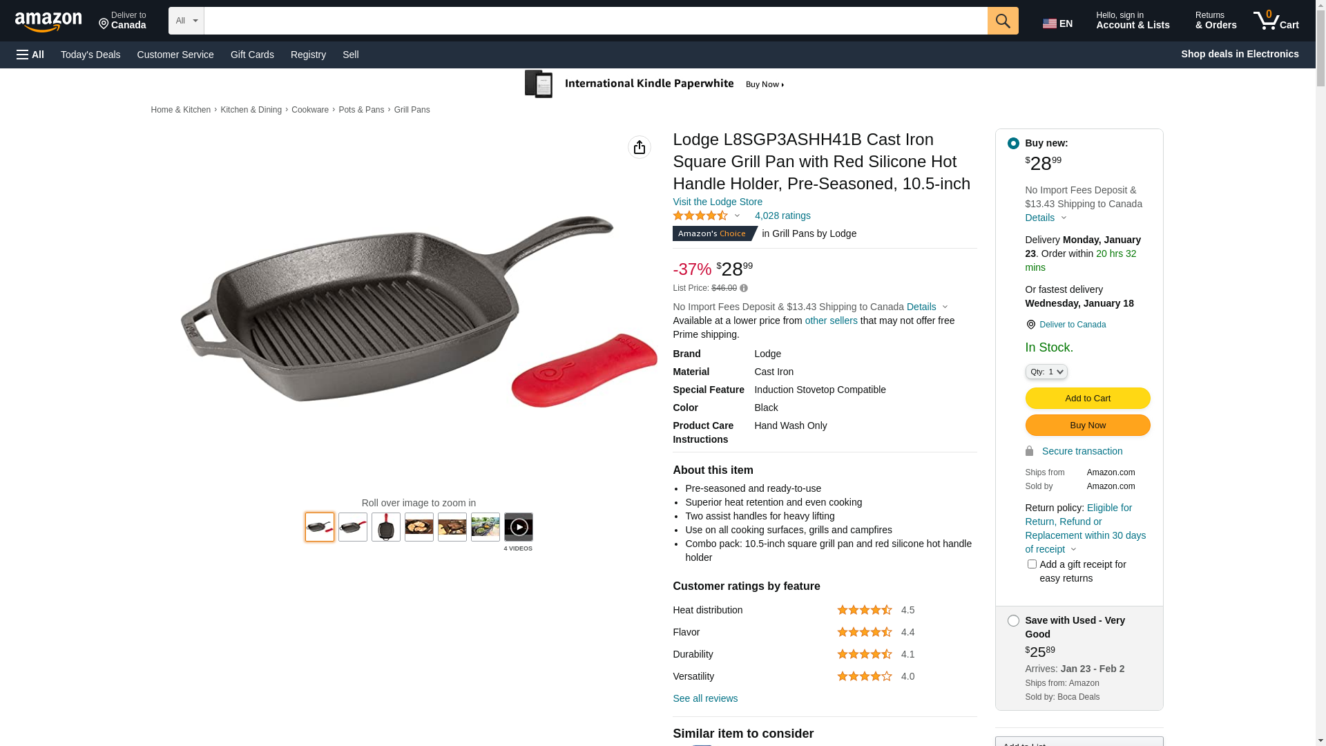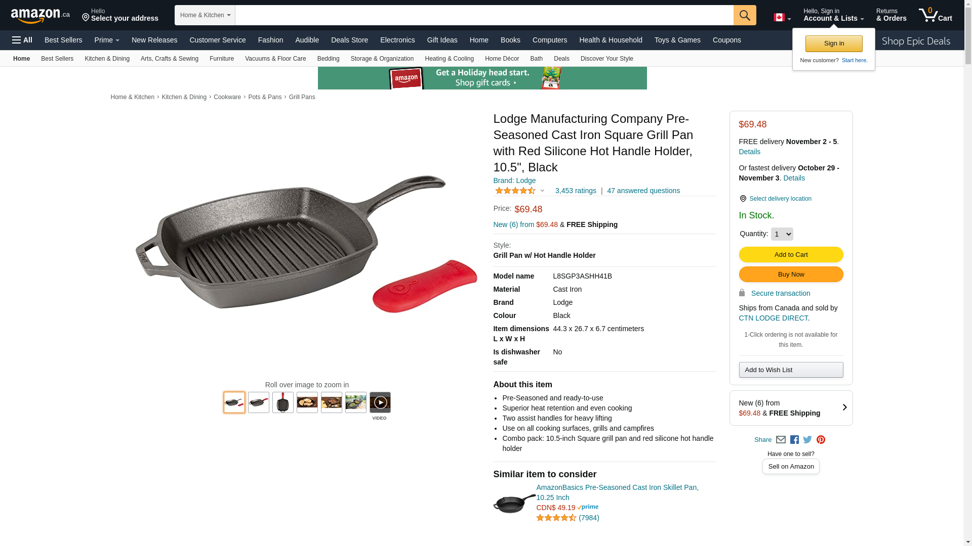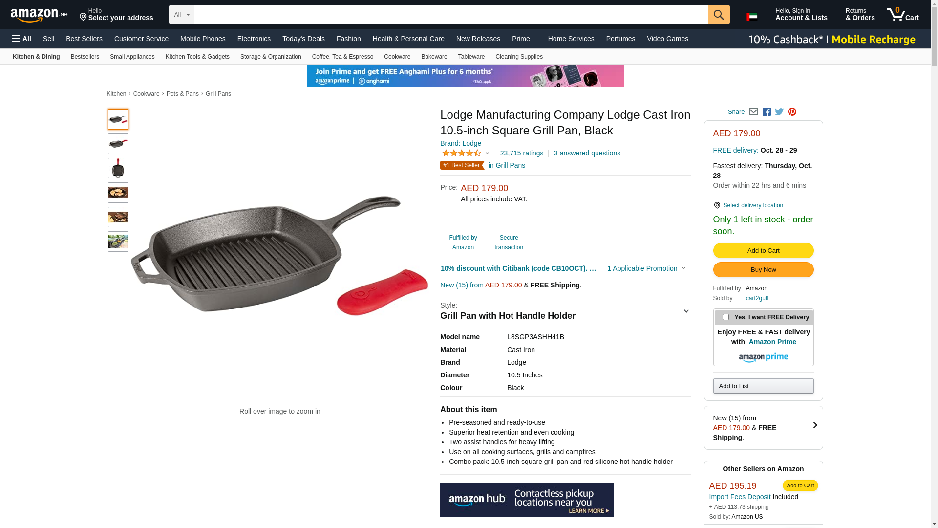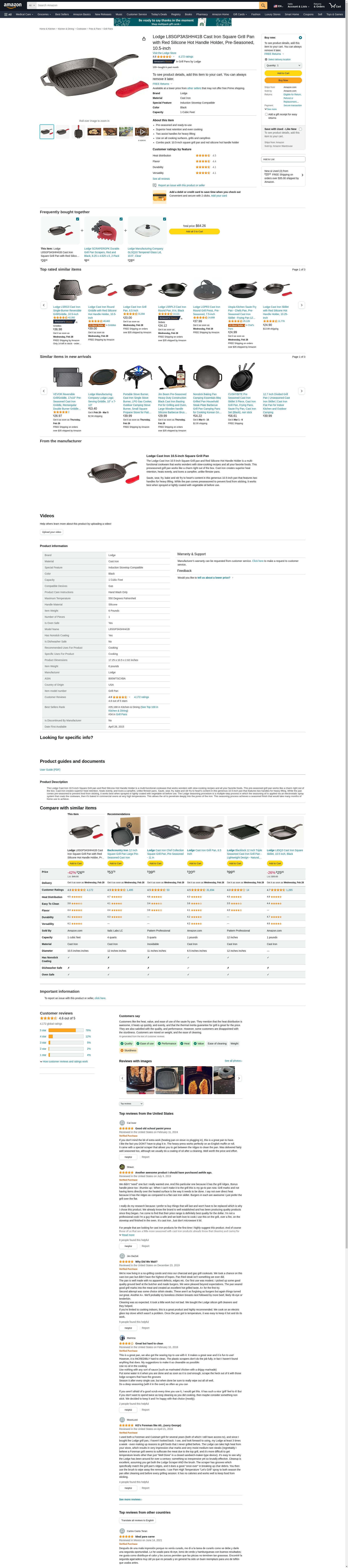 Lodge Manufacturing Company L8SGP3ASHH41B Lodge Cast Iron 10.5-inch Square Grill Pan, Black: Maxedbuy.com