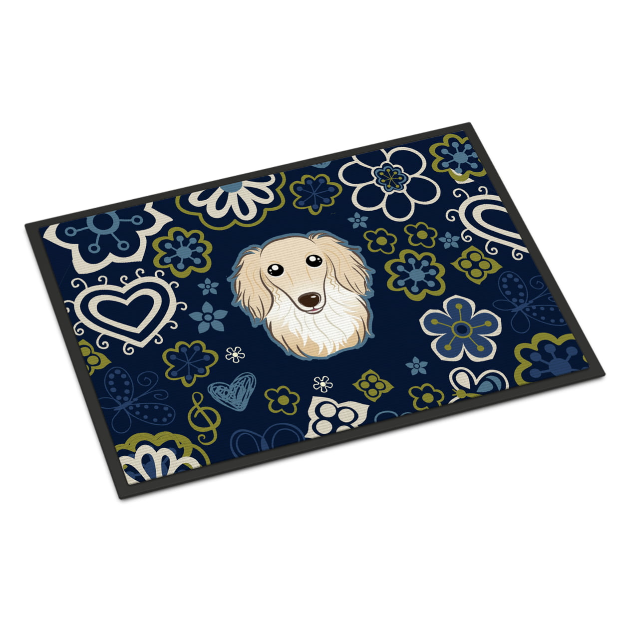 Caroline's Treasures BB5063MAT Blue Flowers Longhair Creme Dachshund Door Mat, Indoor Rug or Outdoor Welcome Mat 18x27 Doormat, 27" L x 18" W, Multicolor